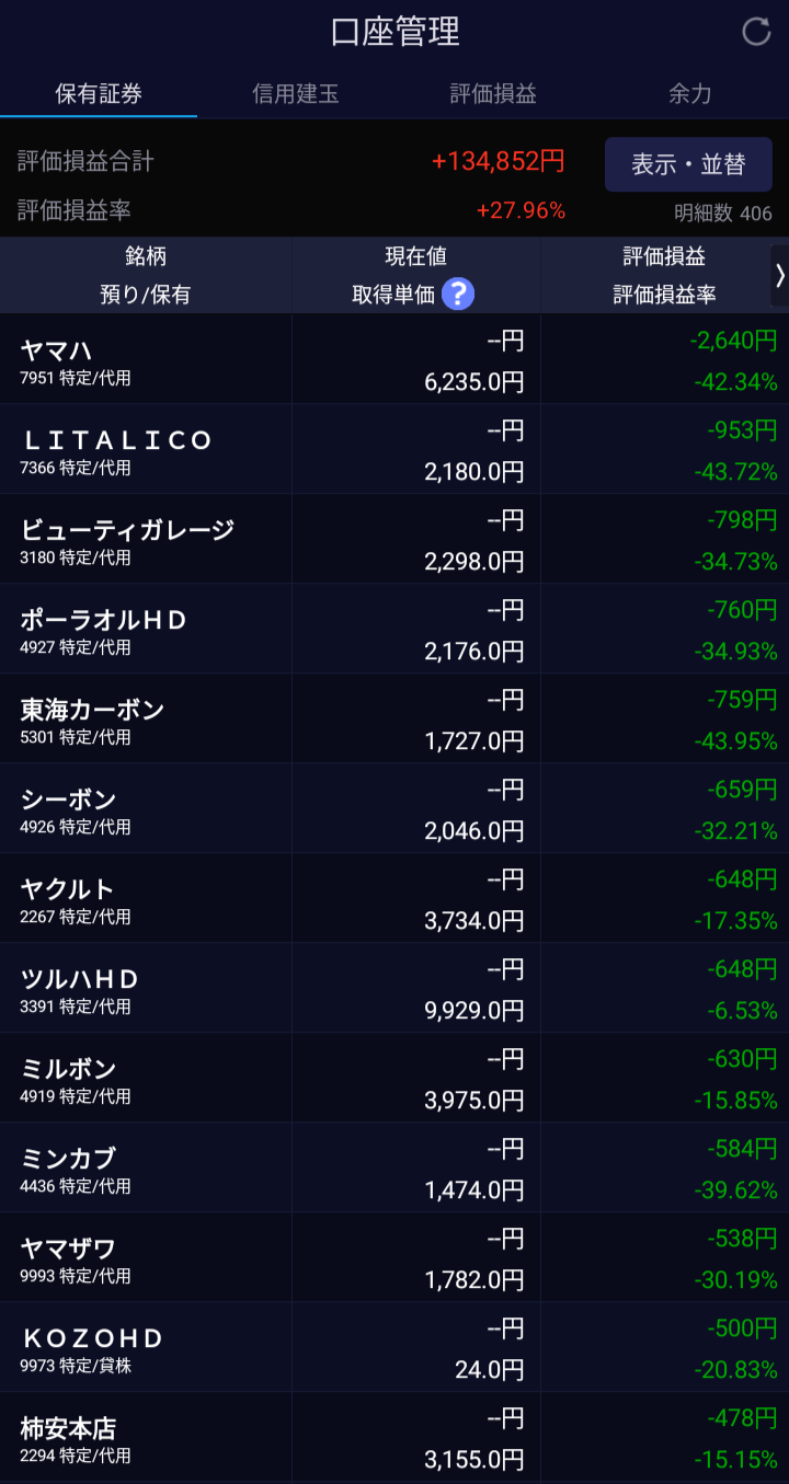 夫:+134,852円 406銘柄(前月比-104円 +8銘柄)