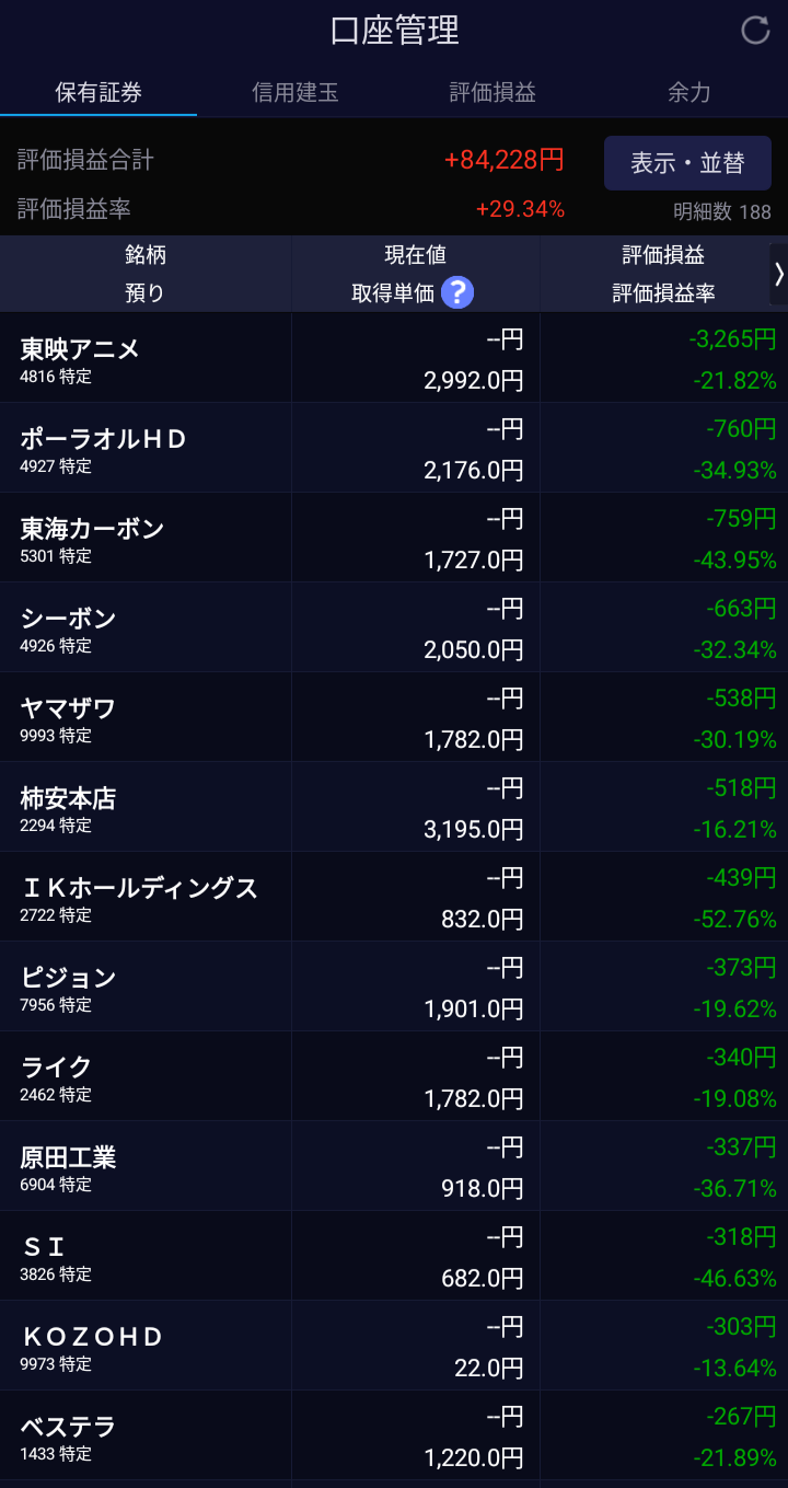 私:+84,228円 188銘柄(前月比-1,352円 +1銘柄)