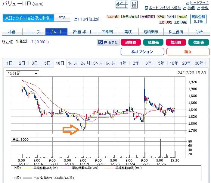 12月権利のスイングトレード 2024年12月26日 こんばんは~みかんちゃんです🍊いつもお読みいただき、ありがとうございます(❁ᴗ͈ˬᴗ͈)早速ですが、スイングの結果ですーバリューHRを今月の18日に1,786円で買い…(オレンジ矢印のところ)先程PTSで、1,809円で売りました。株主優待品はもちろん、配当金とキャピタルまでGETできました! < 前の記事次の記事 > コメント コメントフォーム 名前 コメント 評価する リセット リセット 顔 星 投稿する 情報を記憶